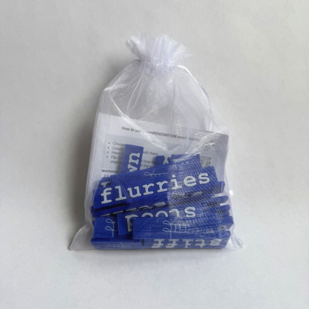 FREE U.S. SHIPPING! Capture the hush of a winter’s day as snow drifts softly from the sky. These word blocks invite you to play with the peaceful stillness that follows the season’s first storm. Perfect for reflecting on nature’s beauty and the calm snow can bring. Passage by poet James Russell Lowell. Packaged in an organza bag, complete with a card featuring the original text and a QR code to creative prompts.